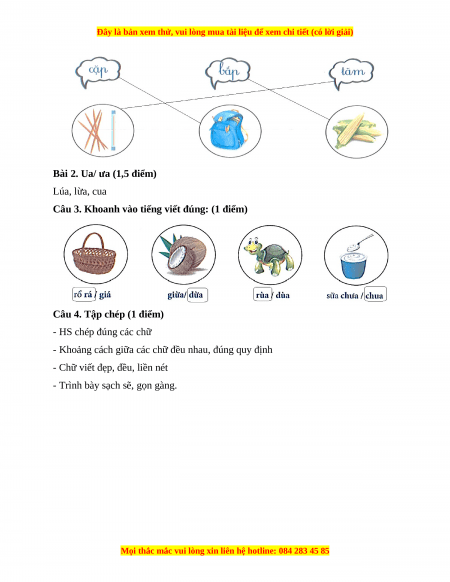Bài 2. Ua/ ưa (1,5 điểm)