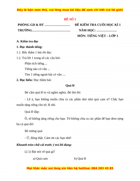 1. Đọc thành tiếng (3 điểm)