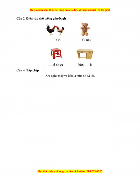 Câu 2. Điền vào chỗ trống g hoặc gh Câu 4. Tập chép