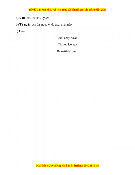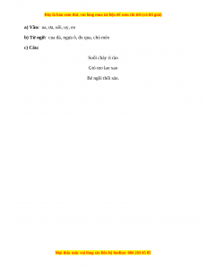 b) Từ ngữ: cua đá, ngựa ô, đu qua, chú mèo c) Câu: Suối chảy rì rào Gió reo lao xao Bé ngồi thổi sáo.