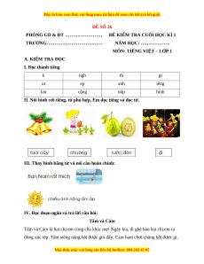 Đề thi Tiếng Việt lớp 1 Học kì 1 Chân trời sáng tạo (Đề 26)