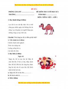 Đề thi Tiếng Việt lớp 1 Học kì 1 Chân trời sáng tạo (Đề 3)