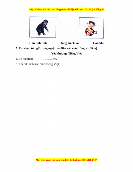 5. Em chọn từ ngữ trong ngoặc và điền vào chỗ trống: (1 điểm)