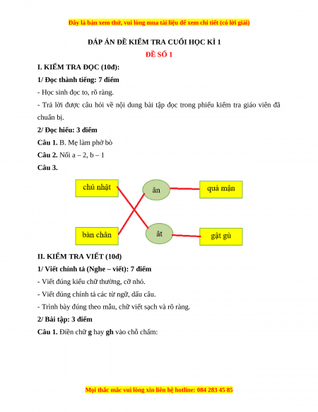 ĐÁP ÁN ĐỀ KIỂM TRA CUỐI HỌC KÌ 1 ĐỀ SỐ 1