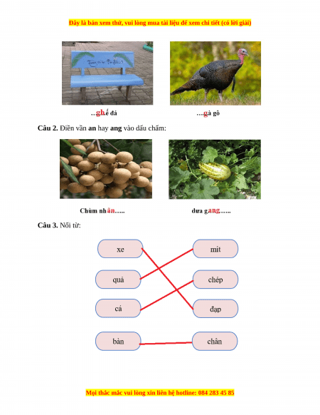 Câu 2. Nối a – 2, b – 1 Câu 3.