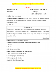 Đề thi Tiếng Việt lớp 1 Học kì 1 Kết nối tri thức (Đề 2)