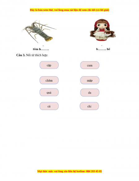 Câu 3. Nối từ: