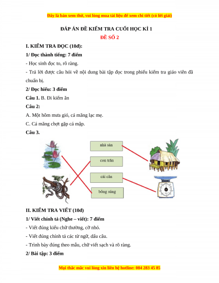 ĐÁP ÁN ĐỀ KIỂM TRA CUỐI HỌC KÌ 1 ĐỀ SỐ 2