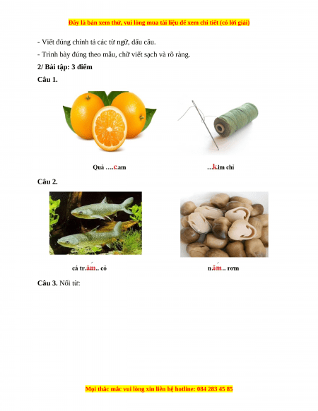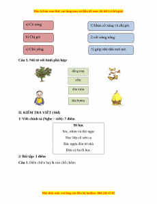 1/ Viết chính tả (Nghe – viết): 7 điểm Đi học Sóc, nhím và thỏ ngọc Học lớp cô sơn ca Bác ngựa đón từ nhà Đưa cả ba đi học.