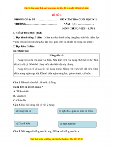 Đề thi Tiếng Việt lớp 1 Học kì 1 Kết nối tri thức (Đề 5)