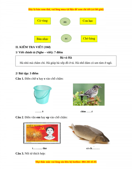 1/ Viết chính tả (Nghe – viết): 7 điểm Bà và Hà