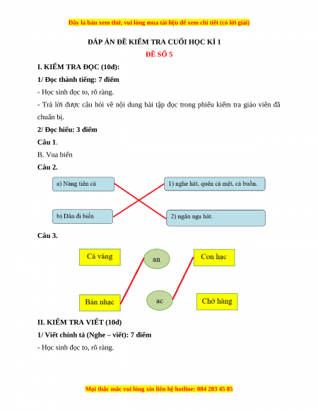 ĐÁP ÁN ĐỀ KIỂM TRA CUỐI HỌC KÌ 1 ĐỀ SỐ 5