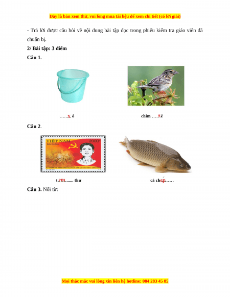 - Trả lời được câu hỏi về nội dung bài tập đọc trong phiếu kiểm tra giáo viên đã chuẩn bị.