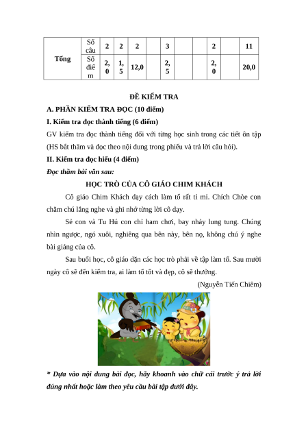 A. PHẦN KIỂM TRA ĐỌC (10 điểm)