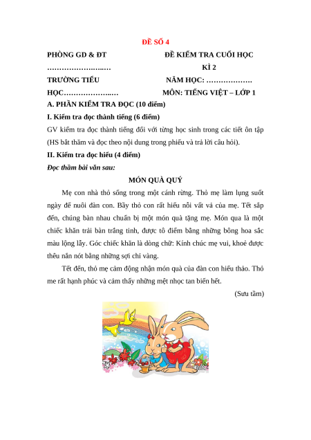 A. PHẦN KIỂM TRA ĐỌC (10 điểm)