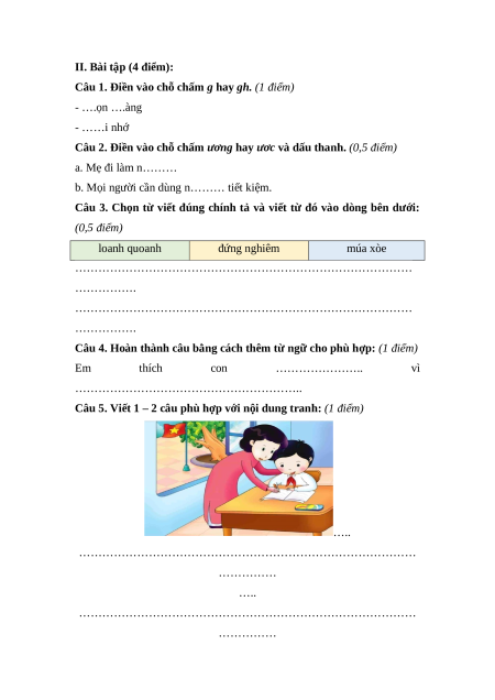 Câu 5. Viết 1 – 2 câu phù hợp với nội dung tranh: (1 điểm) …..