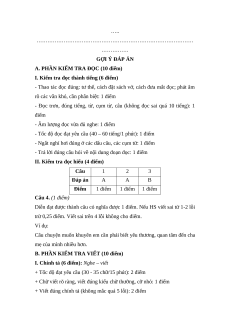 II. Kiểm tra đọc hiểu (4 điểm) Câu 1 2 3 Đáp án A A B Điểm 1 điểm 1 điểm 1 điểm