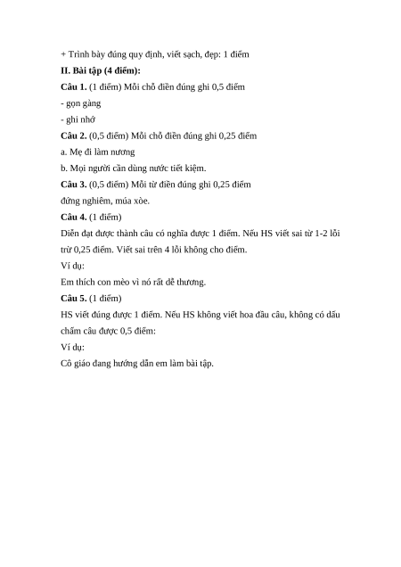 + Viết đúng chính tả (không mắc quá 5 lỗi): 2 điểm