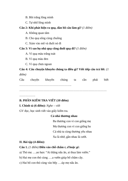 Câu 1. (1 điểm) Điền vào chỗ chấm r, d hoặc gi: