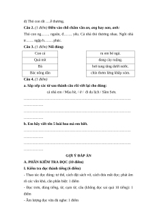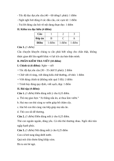 II. Kiểm tra đọc hiểu (4 điểm) Câu 1 2 3 Đáp án B C A Điểm 1 điểm 1 điểm 1 điểm