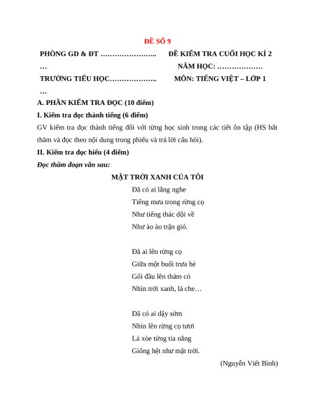 ĐỀ SỐ 9