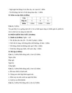 Câu 1. (1 điểm) Điền vào chỗ chấm ng hoặc ngh: …..ón chân Bắp …..ô ……..ỉ hè Lắng …….e
