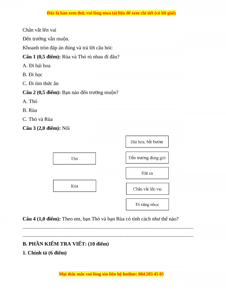 B. PHẦN KIỂM TRA VIẾT: (10 điểm)