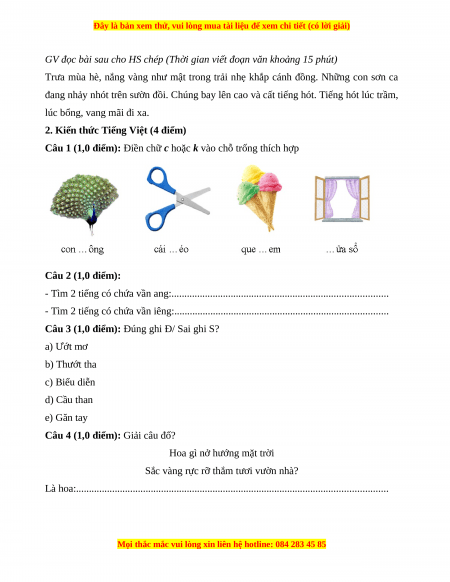 Câu 1 (1,0 điểm): Điền chữ c hoặc k vào chỗ trống thích hợp Câu 2 (1,0 điểm):