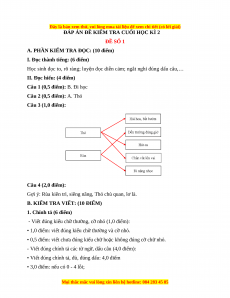 ĐÁP ÁN ĐỀ KIỂM TRA CUỐI HỌC KÌ 2