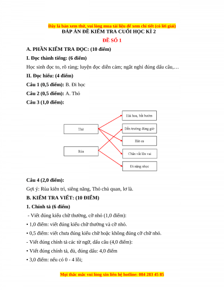 Câu 2 (0,5 điểm): A. Thỏ Câu 3 (1,0 điểm): Câu 4 (2,0 điểm):
