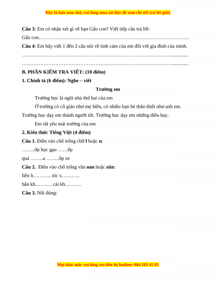 B. PHẦN KIỂM TRA VIẾT: (10 điểm)