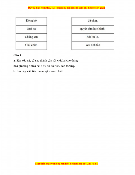 a. Sắp xếp các từ sau thành câu rồi viết lại cho đúng: