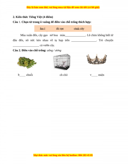 2. Kiến thức Tiếng Việt (4 điểm)