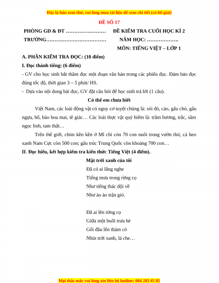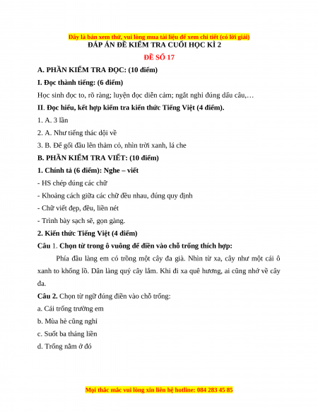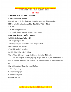 ĐÁP ÁN ĐỀ KIỂM TRA CUỐI HỌC KÌ 2 ĐỀ SỐ 17