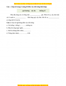 Câu 1. Chọn từ trong ô vuông để điền vào chỗ trống thích hợp: