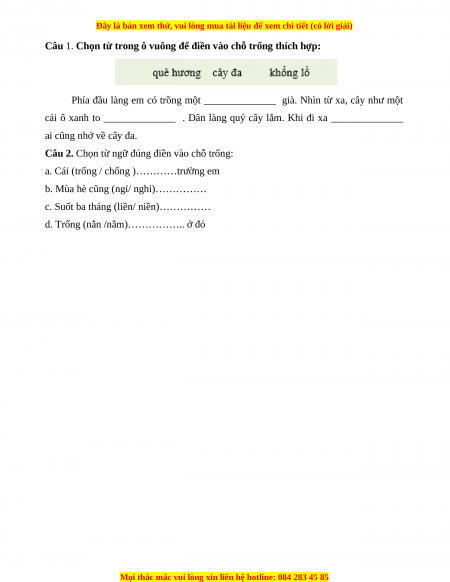 Câu 2. Chọn từ ngữ đúng điền vào chỗ trống: