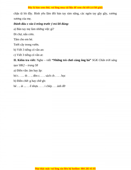 II. Kiểm tra viết: Nghe – viết “Những trò chơi cùng ông bà” SGK Chân trời sáng tạo/ HK2 – trang 58 a) Điền vần: ăm hay ăp: