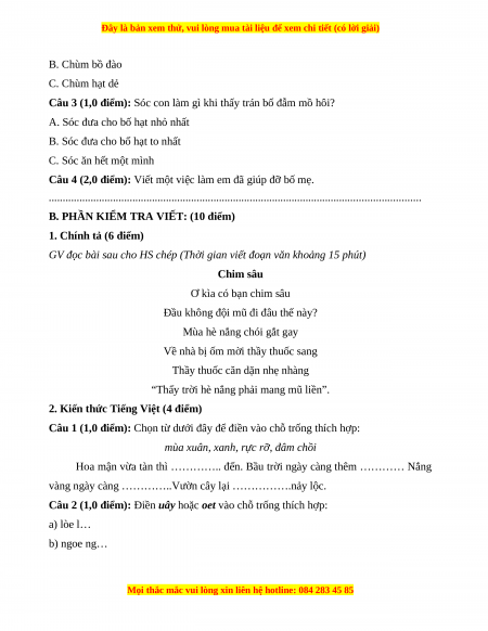 B. PHẦN KIỂM TRA VIẾT: (10 điểm)