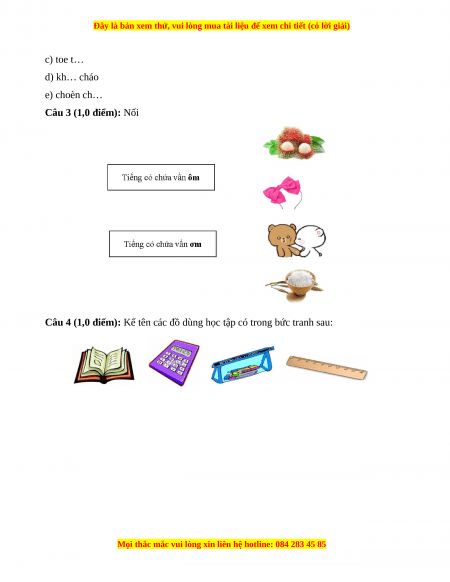 Câu 4 (1,0 điểm): Kể tên các đồ dùng học tập có trong bức tranh sau: