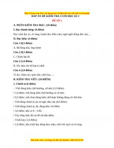 ĐÁP ÁN ĐỀ KIỂM TRA CUỐI HỌC KÌ 2