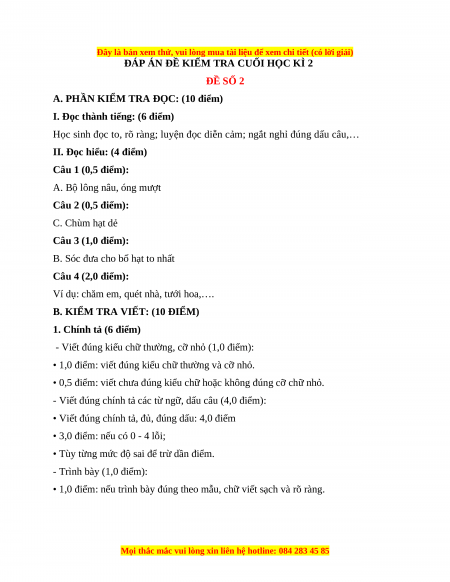 ĐÁP ÁN ĐỀ KIỂM TRA CUỐI HỌC KÌ 2 ĐỀ SỐ 2
