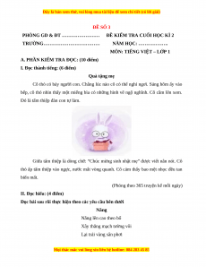 Đề thi Tiếng Việt lớp 1 Học kì 2 Chân trời sáng tạo (Đề 3)