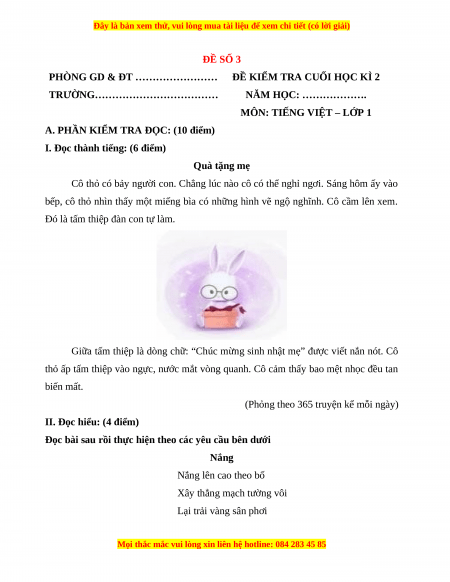 I. Đọc thành tiếng: (6 điểm) Quà tặng mẹ