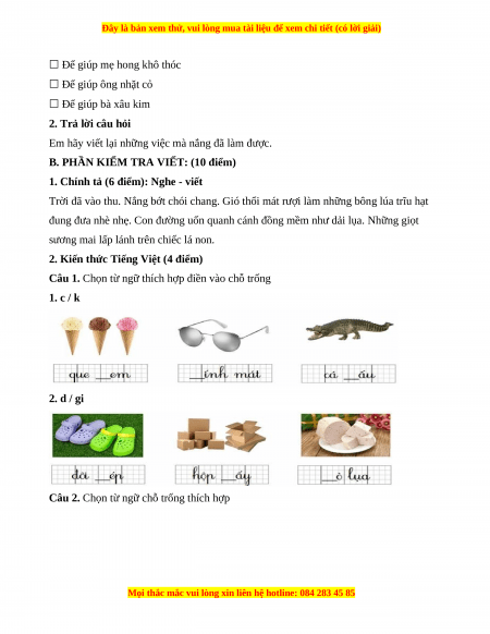 B. PHẦN KIỂM TRA VIẾT: (10 điểm)