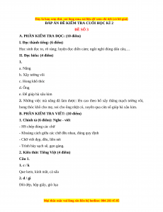 ĐÁP ÁN ĐỀ KIỂM TRA CUỐI HỌC KÌ 2