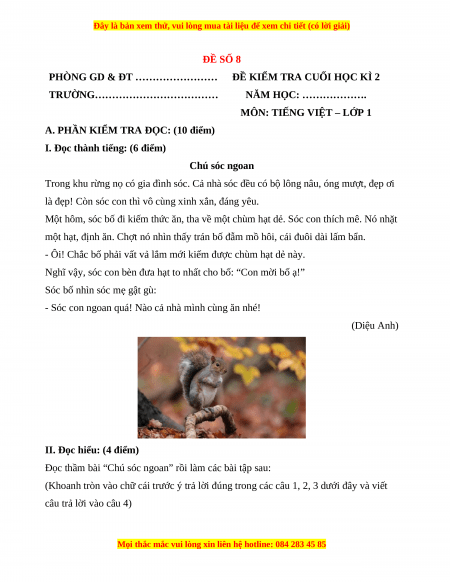 I. Đọc thành tiếng: (6 điểm) Chú sóc ngoan