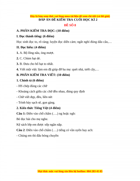 ĐÁP ÁN ĐỀ KIỂM TRA CUỐI HỌC KÌ 2 ĐỀ SỐ 8