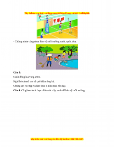 Câu 4: Cô giáo và các bạn chăm sóc cây xanh để bảo vệ môi trường.