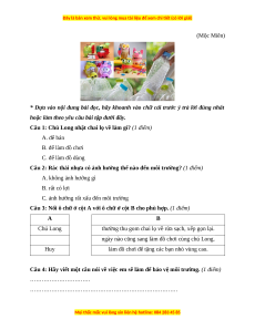 Câu 1: Chú Long nhặt chai lọ về làm gì? (1 điểm) A. để bán B. để làm đồ chơi C. để làm đồ dùng