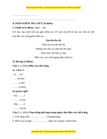 B. PHẦN KIỂM TRA VIẾT (10 điểm)